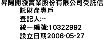 昇陽開發實業股份有限公司受託信託財產專戶