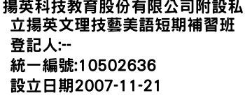揚英科技教育股份有限公司附設私立揚英文理技藝美語短期補習班