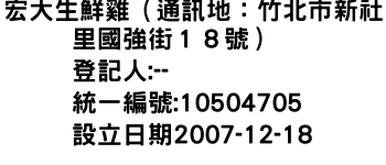 宏大生鮮雞(通訊地:竹北市新社里國強街18號)