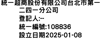 統一超商股份有限公司台北市第一二四一分公司