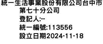 統一生活事業股份有限公司台中市第七十分公司