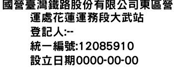 花蓮縣鳳林鎮林榮里兆豐路800號國營臺灣鐵路股份有限公司東區營運處花蓮運務段花蓮站-統編:94771521