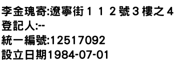 李金瑰寄:遼寧街112號3樓之4