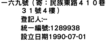 統一編號:01289938