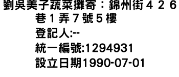 劉吳美子蔬菜攤寄:錦州街426巷1弄7號5樓