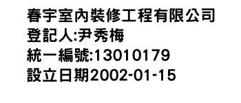 統一編號:13010179