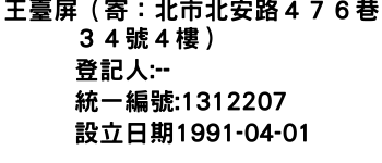 統一編號:01312207