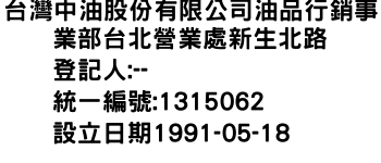 台灣中油股份有限公司油品行銷事業部台北營業處新生北路