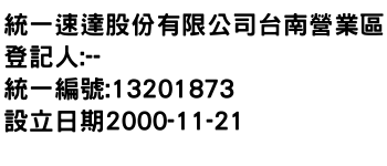 臺南市鹽水區岸內里蔦松路21號1樓統一速達股份有限公司逢甲營業所-統編:94557965