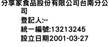 桃園市楊梅區東流里甡甡路693巷11弄2號分享家食品股份有限公司台南分公司-統編:13213245
