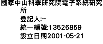 桃園市龍潭區渴望路185號2樓之3國家中山科學研究院電子系統研究所-統編:13526859