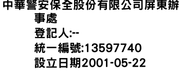中華警安保全股份有限公司屏東辦事處