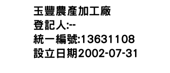 新北市新店區民生路15號2樓玉豐農產加工廠-統編:13631108