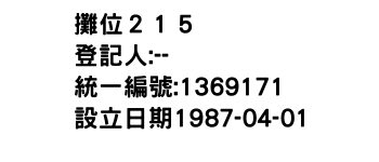 統一編號:01369171