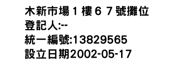 木新市場1樓67號攤位