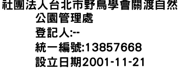 社團法人台北市野鳥學會關渡自然公園管理處