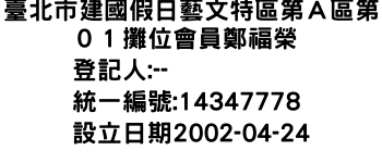 臺北市建國假日藝文特區第A區第01攤位會員鄭福榮