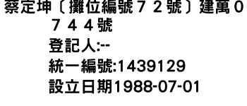 蔡定坤〔攤位編號72號〕建萬0744號