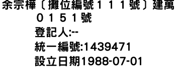 統一編號:01439471
