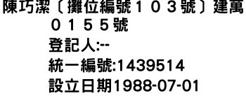 陳巧潔〔攤位編號103號〕建萬0155號
