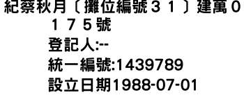 統一編號:01439789