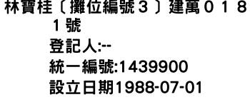統一編號:01439900
