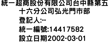 統一超商股份有限公司台中縣第五十六分公司弘光門市部