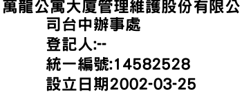 萬龍公寓大廈管理維護股份有限公司台中辦事處