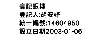 臺北市大同區大龍街177巷9號1樓豪玥有限公司-統編:00145712