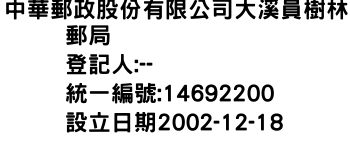 新北市中和區壽南里南山路320巷7號中華郵政股份有限公司大溪崎頂郵局-統編:14692216