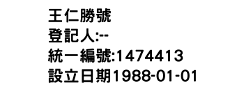 統一編號:01474413