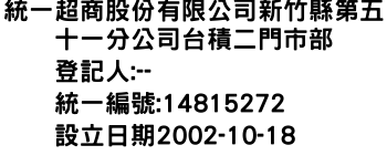 統一超商股份有限公司新竹縣第五十一分公司台積二門市部
