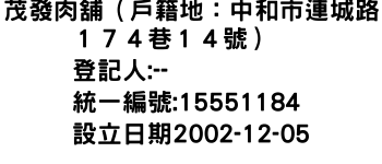 茂發肉舖(戶籍地:中和市連城路174巷14號)