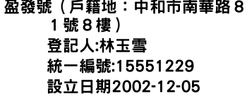 盈發號(戶籍地:中和市南華路81號8樓)