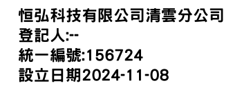恒弘科技有限公司清雲分公司-統編:00156724