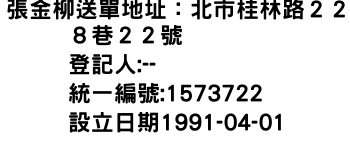 張金柳送單地址:北市桂林路228巷22號