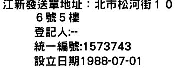 江新發送單地址:北市松河街106號5樓