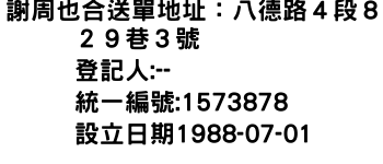 謝周也合送單地址:八德路4段829巷3號