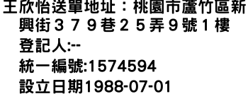王欣怡送單地址:桃園市蘆竹區新興街379巷25弄9號1樓