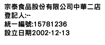 宗泰食品股份有限公司中華二店