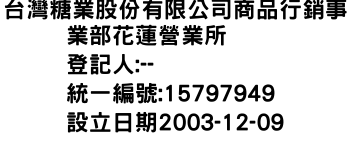 台灣糖業股份有限公司商品行銷事業部花蓮營業所-統編:15797949