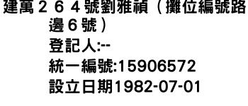 建萬264號劉雅禎(攤位編號路邊6號)