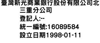 臺灣新光商業銀行股份有限公司北三重分公司