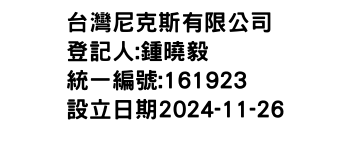 臺中市北 區賴村里中清路1段370號10樓之2台灣尼克斯有限公司-統編:00161923