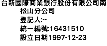 台新國際商業銀行股份有限公司南松山分公司