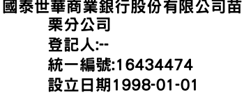 國泰世華商業銀行股份有限公司苗栗分公司