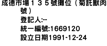 成德市場135號攤位(菊託獸肉號)
