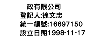 統一編號:16697150