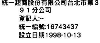 統一超商股份有限公司台北市第391分公司