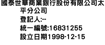 國泰世華商業銀行股份有限公司太平分公司